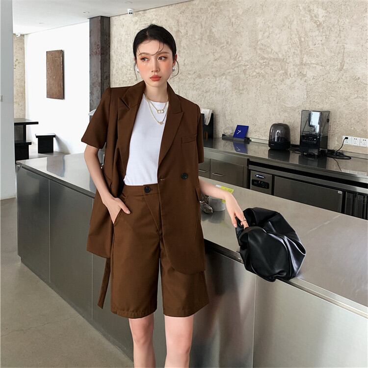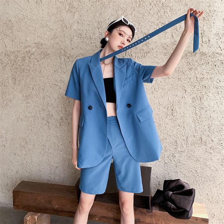 レディース 2022年夏 半袖 スーツ コート 薄い デザインセンス 2点セット