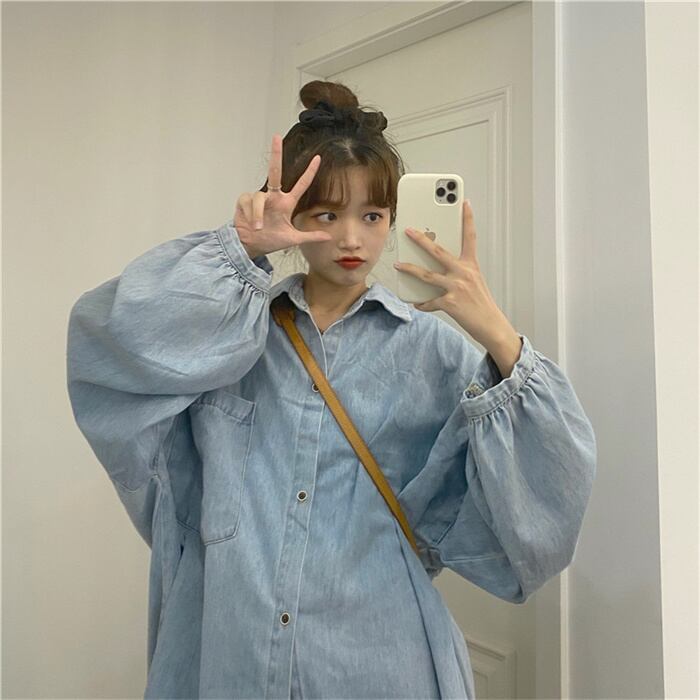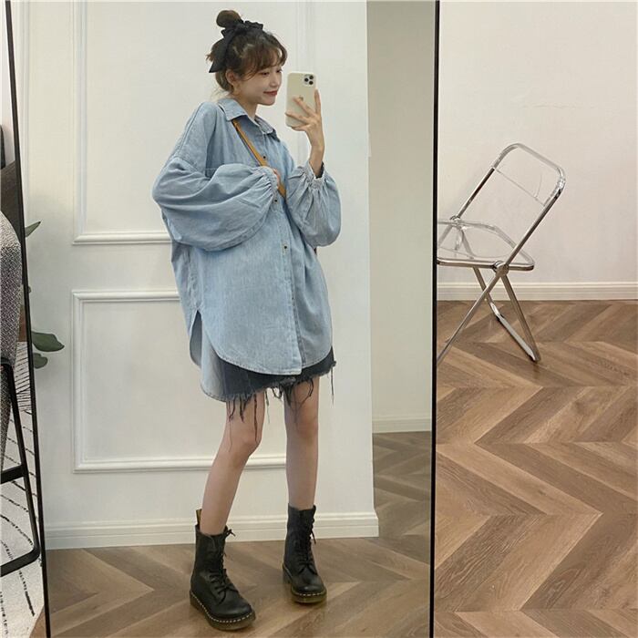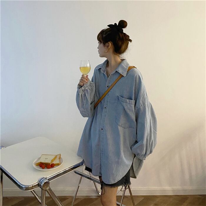着痩せ効果!レディース/春/韓国/ルーズ/ラージポケット/長袖/多用途/デニムシャツ/コート/タイド