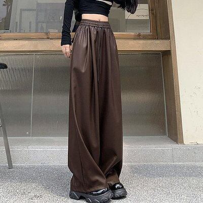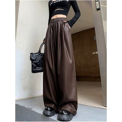 ワイドパンツ レザーパンツ 女性 秋 新作 ゆったり カジュアル 薄手 ワイドパンツ ドラッグパンツ