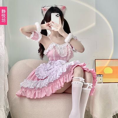 ロリータ ピンク アニメ メイド服 コスプレ衣装 ロリータ ホルタードレス 三点セット