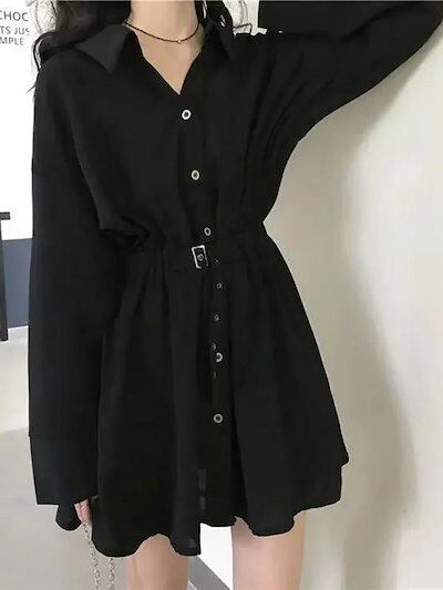 人气 新作 ロングワンピース ブラック ドレス 2024 新しい 秋 薄手 長袖 シャツワンピース