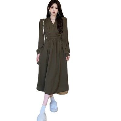 人气 新作 ロングワンピース ロングドレス 秋 スリム 軽やかな大人スタイル Vネック ドレス
