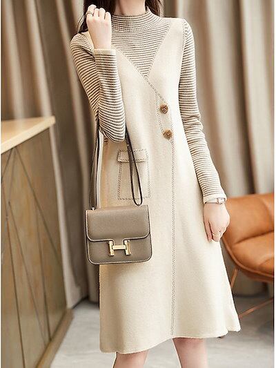 ワンピース 2024 秋 新しいスタイル フェイク・ツーピース ストライプ ニット ワンピース レディース