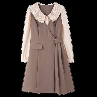 ワンピース パッチワーク ドレス 女性2024 秋 新しいスタイル ラペル シンプル ワンピース