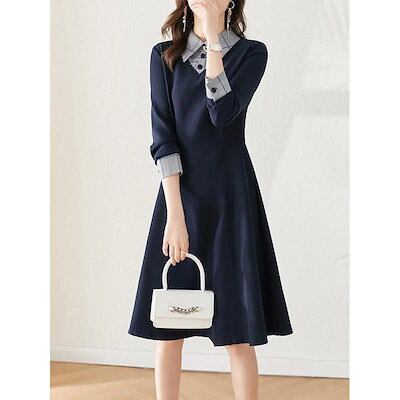 ワンピース 2024 秋 新しい フェイク2ピース ドレス 女性 ミディアム丈モデル 薄手 ファッション ドレス