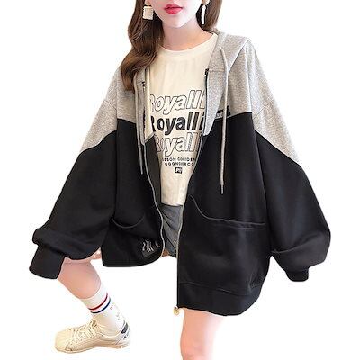 韓国 パーカー 2024秋 新しい カラー衝突 ジップセーターの女性 ルーズ ロングスリーブ ジャケット