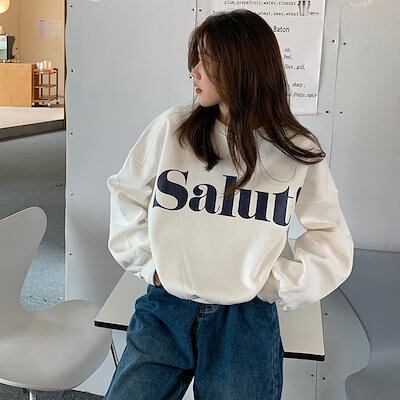 韓国 パーカー スウェット レディース 2024年秋冬新作 気質 ラウンドネック 手紙 長袖 スウェット レディース44