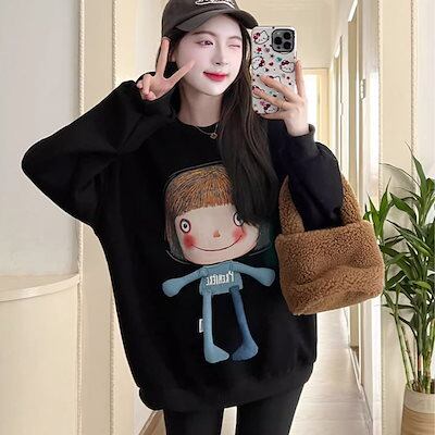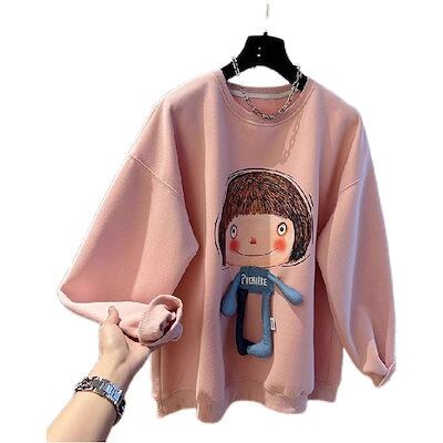 韓国 パーカー ピンクのスウェットシャツ女性 秋と冬 大きいサイズ ファッション ラウンドネック スウェットシャツ トップス レディース45