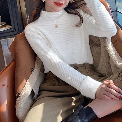 裏起毛ニットトップス レディース 暖かい ニット セーター