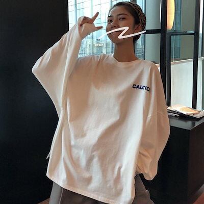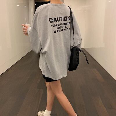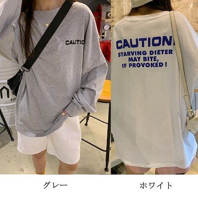 Tシャツ レディース 長袖 カットソー おしゃれ ロゴ オーバーサイズ 大きいサイズ ゆったりTシャツ