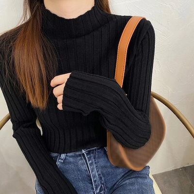ベーシックニット リブニットトップス プチハイネック人气 新作