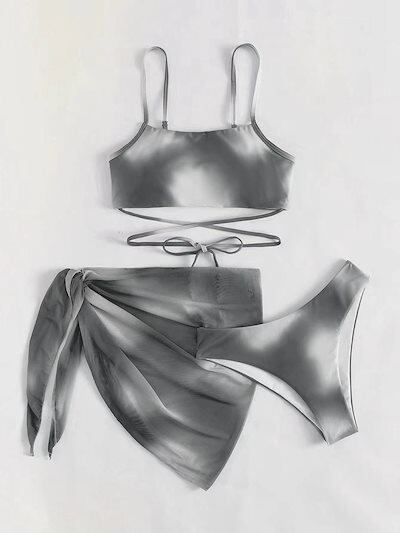 【3日以内出荷】水着 レディース 競泳 欧米の水着3点セットプリント多色分け三角ビキニがセクシー 体型カバー 韓国ファッション