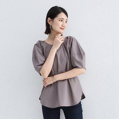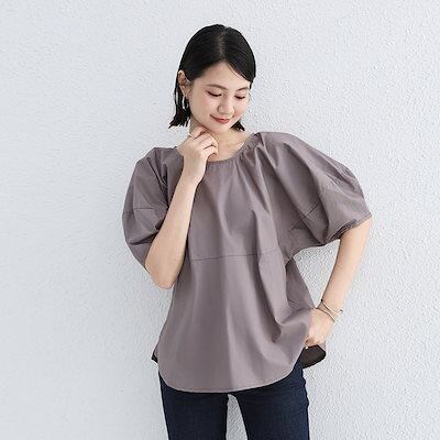 Tシャツ レディース 気質 通勤 丸首 泡袖シック円弧開叉通気廓形袖シャツ トップス 韓国ファッション