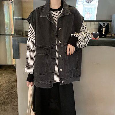 デニムジャケット レディース デニムベスト 春秋アウター ゆったりノースリーブ トップス コートアウター 韓国ファッション
