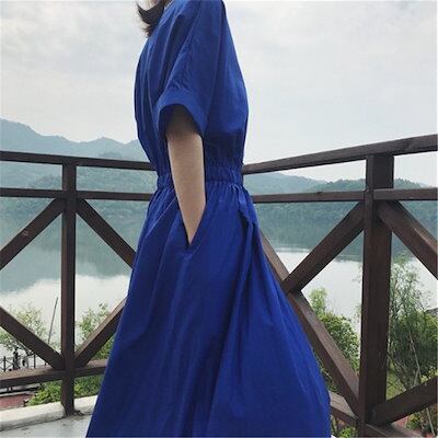 ワンピース レディース 韓国ワンピース2024夏新作Vネックロング腹巻ワンピース ドレス 韓国ファッション