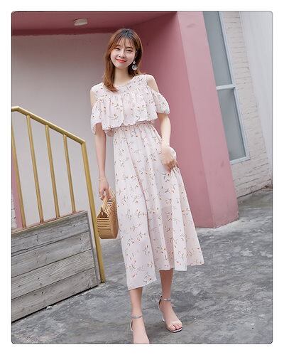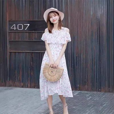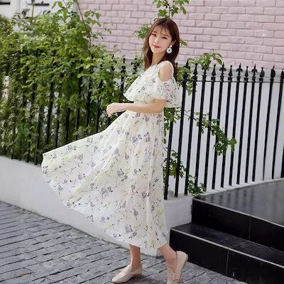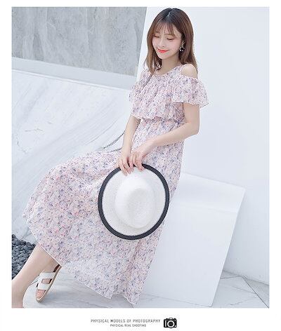 ワンピース レディース ビーチリゾートビーチスカート2024夏の新作甘い花柄シフォンワンピース ドレス 韓国ファッション