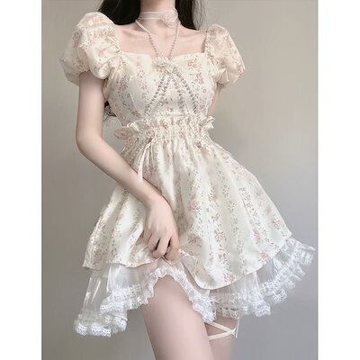 便利!2wayワンピースロリータコスプレ2023作夏ロリータワンピース可愛いレースロングスカート 2.脚魅せミニスカート レディース 韓国