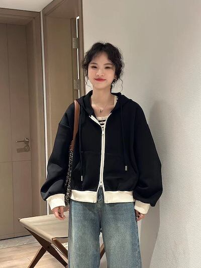 パーカー 韓国ファッション長袖レディース パーカー 連帽レトロなパステルカラーのパーカー24ファスナーで着やせカジュアルトップス