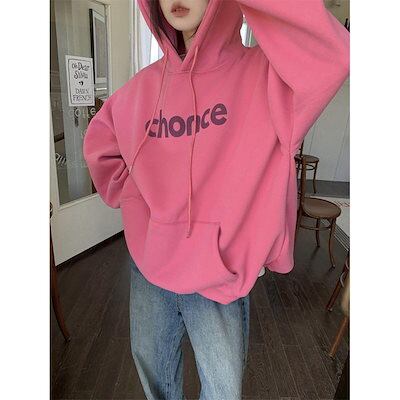パーカー 韓国ファッション長袖レディース パーカー アメリカンオーバーシーズピンクのフードパーカーレディースゆったりカジュアルアウター