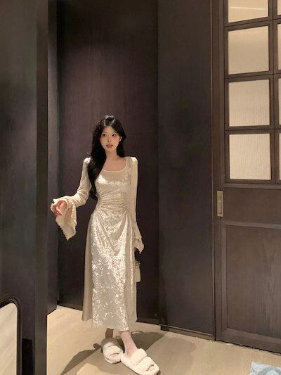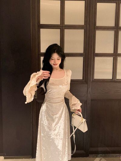 ロングドレス 韓国ファッション 礼服 ドレス パーティードレス レディース 結婚式 ワンピース パーティードレス 気質ライトラグジュアリー2024新しいデザインドレススリムロングスカート
