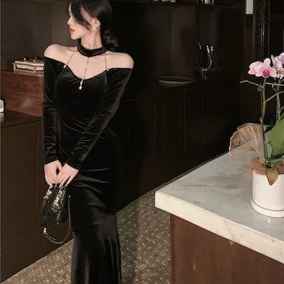 ロングドレス 韓国ファッション 礼服 ドレス パーティードレス レディース 韓国ファッション パーティードレス ナイトドレスウエストスリット入りノースリーブワンピース上品 成人式 演奏会 発表会 卒