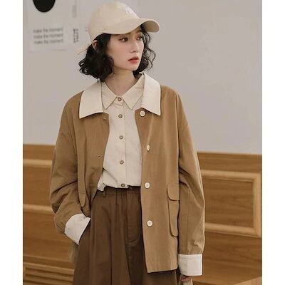 メガ割 レディース服 アウター 通勤 テーラードジャケット 秋アウターシンプル!ノーカラーコート春アウター ジャケット日系エンジコート春と秋新作トップスパーカー レディース 韓国ファッション