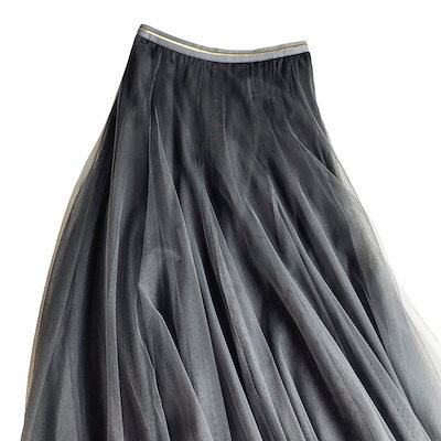 プリーツスカート 韓国 2024夏 ウエストをゆるめたミドル丈のスレンダーチュールスカート 半身チュールスカート マキシスカート レディース