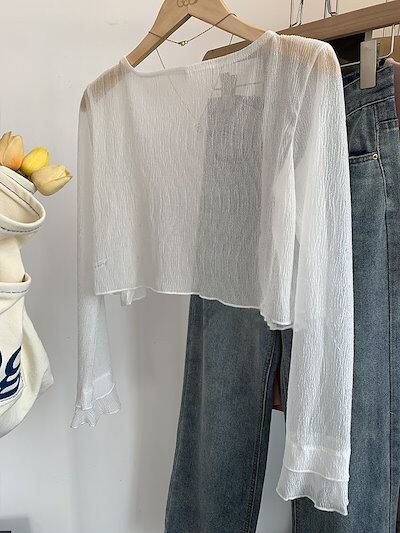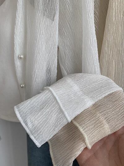 【3日以内出荷】カーディガン uvカット 日焼け止め シフォンのブラウスにストールコート 薄手 パールボタン レディース 韓国ファッション