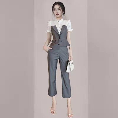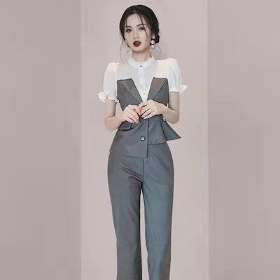 涼しく楽ちんセットアップ シャツ+ワイドパンツ 2024春夏 キャリア 半袖 2点セット 高級感 レディース 韓国ファッション