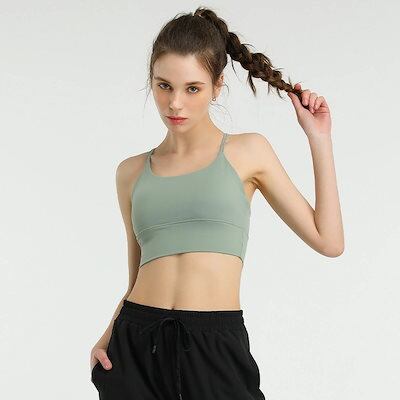 お家ヨガウェアカップ付きインナー レディーススポーツタンクトップ 速乾ブラ 耐衝撃 ギャザー フィットネスウェア