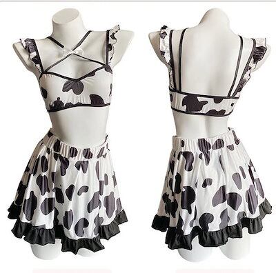 ストッキング付きお得セット メイド コスプレ セクシー メイド服 セクシーコスプレ 牛柄 セット エロ可愛い ハロウィン 仮装 セクシーコス