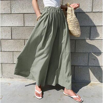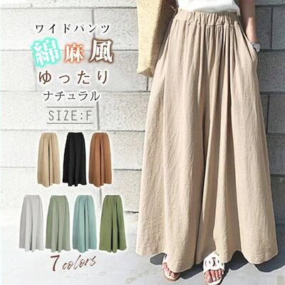 ワイドパンツ ガウチョパンツ レディース きれいめ 大きいサイズ 夏 おしゃれ 麻混 綿麻 前垂らし 楽ちん ひんやり ロングパンツ 春夏秋冬 無地 ロング丈 ボトム