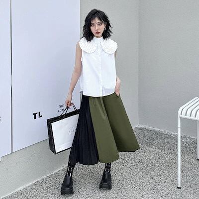 2023夏 新作 おしゃれ コントラストカラー 切り替え ワイドパンツ 薄手 キュロットパンツ カジュアルパンツ 気質 高級感 スラックスパンツ スキニーパンツテーパードパンツひんやりボトムス