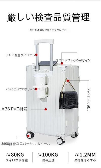 スーツケース キャリーケース 機内持ち込み Sサイズ/Mサイズ/Lサイズ 多機能スーツケース フロントオープン 前開き USBポート付き 充電口 カップホルダー付き 超軽量 大容量