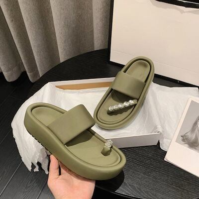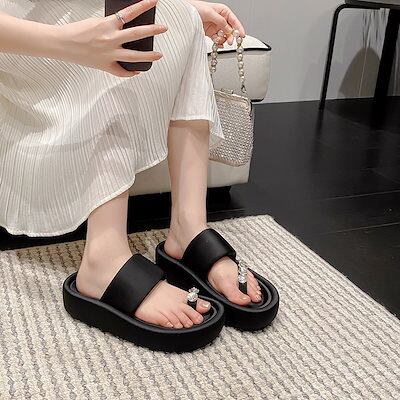 【新品】サンダル/厚底サンダル/シューズ/夏/ラインストーン/オーバーレイトゥ/スリッパ/オシドリ靴/厚底/サンダル/ビーチシューズ