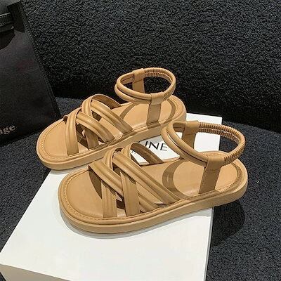 【新品】サンダル/厚底サンダル/シューズ/ローマンサンダル/夏/新品/平底/ソフトボトム/クロス/ストラップ/足が疲れない