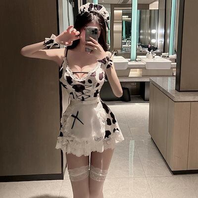 ミルクシェイク!セクシー低胸マイホーム乳牛メイド制服誘惑キャミソールプリンセススカートスーツ女性清新ins 下着 セクシーエロ