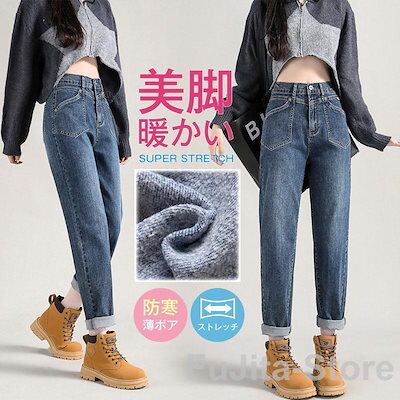 デニムパンツ スキニーデニム レディース 薄ボア ジーンズ 春秋冬 暖かい ワイドパンツ スキニー ゆったり 着痩せ おしゃれ
