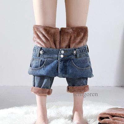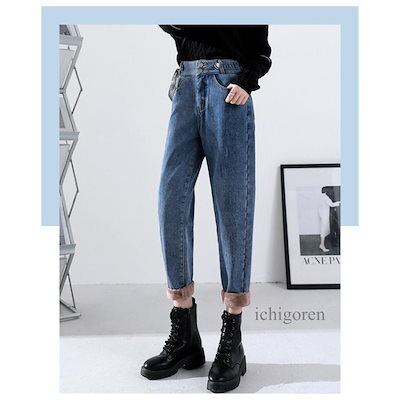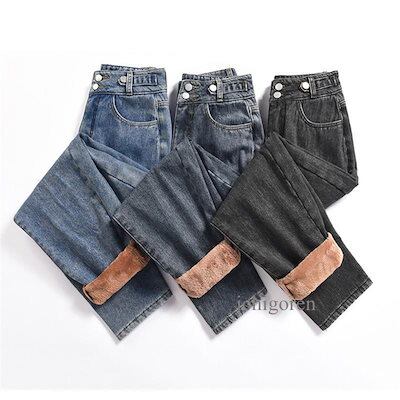 デニムパンツ レディース ジーンズ 裏起毛 裏ボア ワイドパンツ 厚手 ハイウエスト 秋冬 ジーパン 保温 防寒 暖かい ロングパンツ ゆったり 通勤
