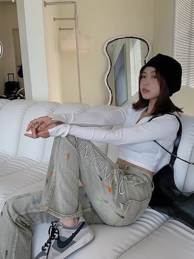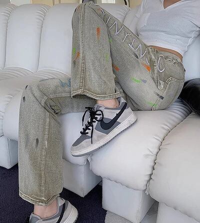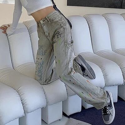 ジーンズ デニムパンツ gパン 長ズボン 大きいサイズ ボトムス ストレート ゆったり 落書き レディース 春 秋 冬 ヒップホップ ダンス カジュアル ストリート風 ファッション