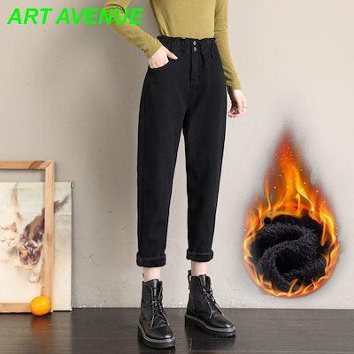 デニムパンツ レディース 裏起毛 テーパードパンツ 秋冬 ワイドパンツ ハイウエスト 体型カバー ゆったり 防寒 コーデ 着痩せ カジュアル