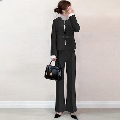 パンツスーツ2点セット カジュアル レディース 韓国風 上下セット 通勤 着痩せ