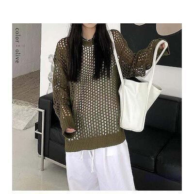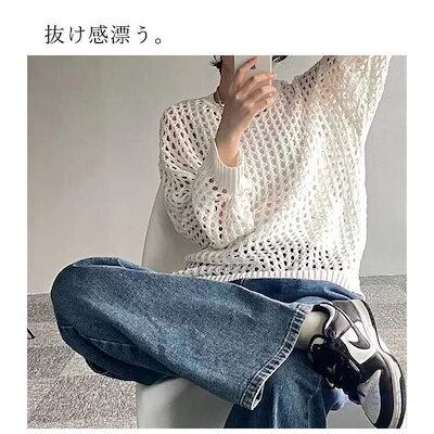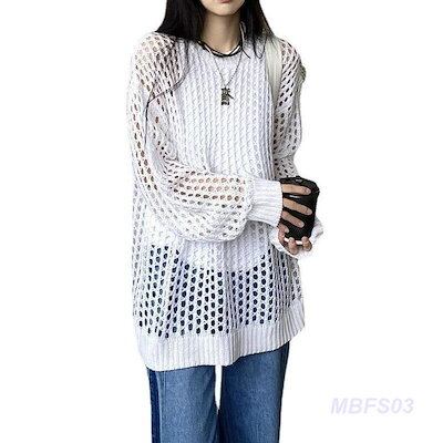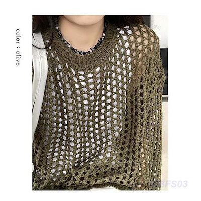アミアミメッシュニット サマーニット 透かし編み 肌見せ 長袖 トップス 重ね着 レイヤード あみあみ 透け フィッシュネット かぎ針編み 編み ()
