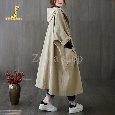 トレンチコート レディース コート 秋 50代 大きいサイズ 秋コート トレンチ ロングコート スプリングコート フード付き アウター カジュアル ゆったり