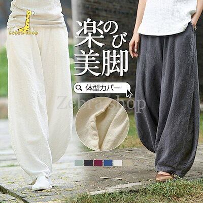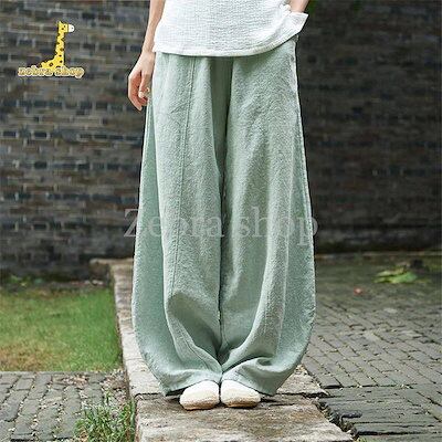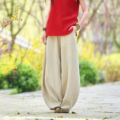 ワイドパンツ レディース イージーパンツ リネンパンツ ウエストゴム ボトムス 綿麻 パンツ 薄手 大きいサイズ ゆったり 40代 50代 30代 ロング