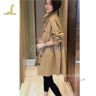 トレンチコート レディース 40代 ミディアム丈ジャケットカーキ スプリングコート 春コート 長袖アウター 秋服 カジュアル韓国風 バーカー 30代 50代 大きい