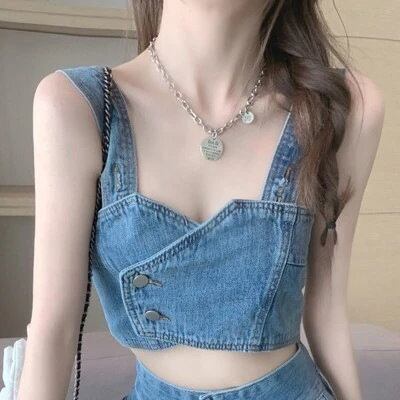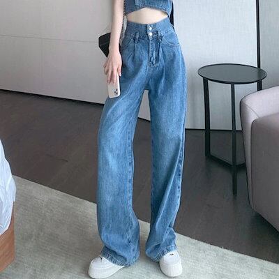 【2枚購入で 2oo円OFF! 】2点セット レトロ ジーンズ タンクトップ ハイウェスト モップパンツ ファッション ジョガーパンツ