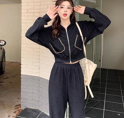 【2枚購入で 2oo円OFF! 】春 フード付きスウェット+ズボン 2点セット カジュアル スウェット 運動 韓国ファッション セットアップ