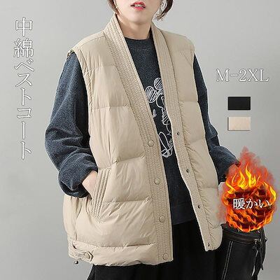人気沸騰新柄追加 中綿コート ベストコート 開襟 中綿コート 無地 ミディ丈 春秋冬 レディース トップス アウター 中綿 ボタン開閉 ポケット有り 大きい 体型カバー