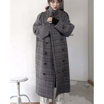ロングコート レディース チェック柄コート ラシャ 洋服 チェスターコート アウター オーバーコート